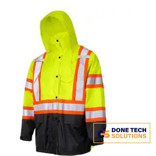 The fluorescent lime fabric also increases daytime visibility. Bright high visibility colors help workers stand out in busy worksites. The High Visibility Rain Jacket in Nairobi therefore supports safety for construction, logistics, and utility crews.